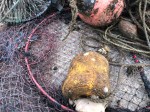 Annelie hard at work emptying a lobsterpot from captured crabs